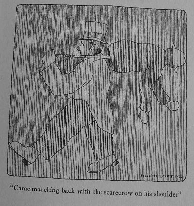 "Came marching back with the scarecrow on his