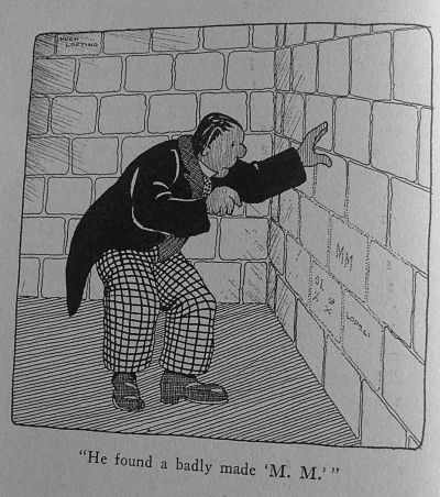 The Doctor spent the night in prison. But in the meantime the lion had taken refuge in the cellar of a bakery and neither the baker nor anybody else dared go down to him. Everybody in the house was scared to go to bed. Messages were sent to the circus to send someone to take the lion away. But the wily Matthew Mugg, although he knew the lion was easily handled by those who knew him, told the people that the Doctor was only one who dared go near him and they better hurry up and let him out of jail if they wanted the lion taken away.