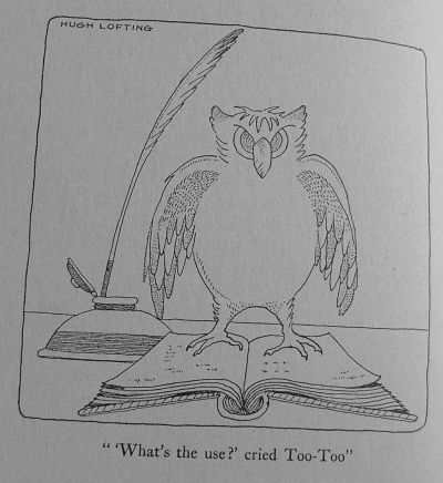 Too-Too, the expert accountant, was busier now than he had ever been. For not only did he keep record of how much the pushmi-pullyu made, but he kept the books for the whole circus. This, with the Doctor's new "coöperative*" arrangement, was no easy task. Strict account of all money paid out to tradespeople had to be carefully entered, and the profits left divided among all the people of the circus in proportion to the amount of work they did. For instance, some of the tent-riggers and wagon-drivers who really only worked one or two days a week did not get so large a share as the side-show performers who were at work all the week. But every one got more when business was good, and less when it was bad.