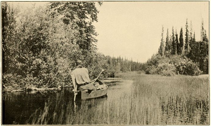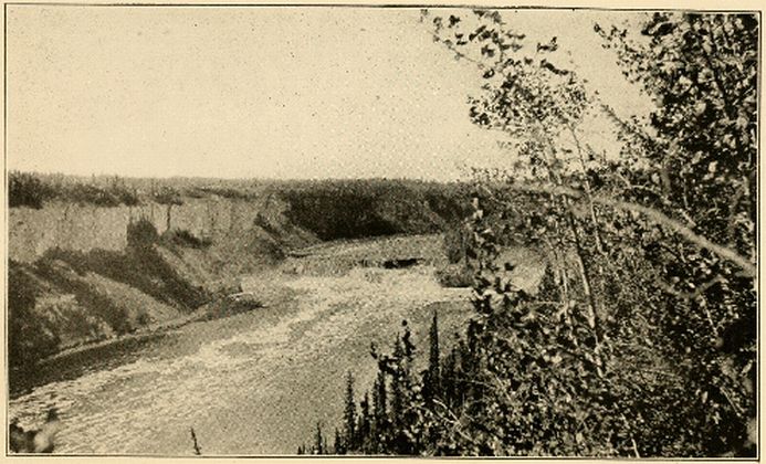 The Lesser Slave, or the "little" river, as it is known hereabouts in contradistinction to the Athabasca, is a jolly little stream. Not since we had left the Crooked River had we enjoyed the same feeling of intimacy with the banks we were passing. For forty-odd miles from the lake it flows with a gentle current back and forth in innumerable hair-pin bends through widespreading meadows of rank grass.