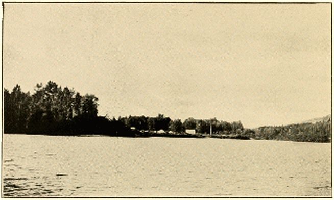 It was an eight- or ten-mile cut the way we went, and at the Blunderbuss's slow rate, an endless voyage. A whole hour's hard paddling made no difference in the look of the far-away shore; indeed it seemed to recede from us as we struggled to reach it. All the way over my anxious eye was cocked for squalls. The high canvas sides of the Blunderbuss offered a good hold to the wind, and if it did blow a gale, it was bound to blow us pretty much where it listed. However, our astonishing luck was still with us. It held off until just as we reached the other shore. Half an hour later the lake was roaring under the lash of an easterly gale.