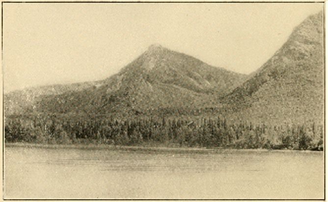 We went down fast enough, but such were the capricious excursions of the stream that progress in a given direction was slow indeed. In one spot near the lake, with a few days' digging some years ago, they broke through to the next bend and saved going round half mile. The wind was still blowing hard, and it played tag with us on the river, swooping on us from a new quarter at every bend. Marten Mountain was still with us, now on our right hand, now on the left. I have not mentioned the exceptional beauty of these distant hills in the clear, bright air of the North. They bask in the sunlight like yellow and blue gardens.