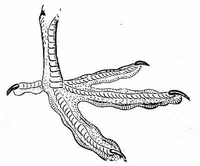 4. And what about hen's teeth? The hen, and all other scratchers, have teeth, but not in the mouth. Their food is swallowed without chewing, and is at once stored in the crop, where, it remains until it is softened. Then it passes into the gizzard, where it is rubbed and ground between tough, hard ribs, like the grooves of a wash-board. To help in this work, the gizzard is filled with sharp stones and bits or gravel which she has swallowed. These are the hen's teeth, and they work quietly, both while she is gathering food and when she is resting or roosting.