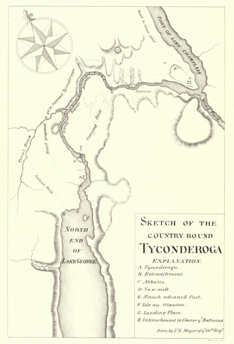 While Johnson lay at Lake George, Dieskau prepared a surprise for him. The German Baron had reached Crown Point at the head of three thousand five hundred and seventy-three men, regulars, Canadians, and Indians. He had no thought of waiting there to be attacked. The troops were told to hold themselves ready to move at a moment's notice. Officers—so ran the order—will take nothing with them but one spare shirt, one spare pair of shoes, a blanket, a bearskin, and provisions for twelve days; Indians are not to amuse themselves by taking scalps till the enemy is entirely defeated, since they can kill ten men in the time required to scalp one. Then Dieskau moved on, with nearly all his force, to Carillon, or Ticonderoga, a promontory commanding both the routes by which alone Johnson could advance, that of Wood Creek and that of Lake George.