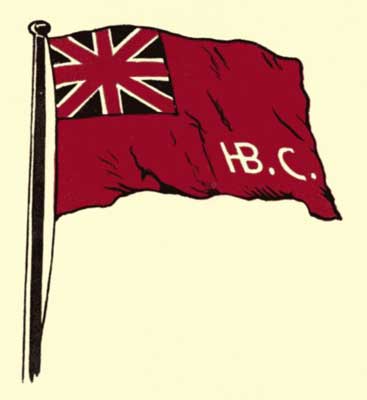 On a little knoll, a hundred yards or so from the water, stands the factor's house, and arranged in the form of a square are the other buildings of the post, consisting of the general store, the warehouse, the blacksmith shop, the canoe house, and the carpenter shop, all of which in the olden time were surrounded by high, pointed and not-easily-to-be-scaled palisades, dominated by a great flagstaff in the midst of the square, from the top of which for honored guest or festal day the banner of the Company waved its lazy folds over a strange and heterogeneous population. The close relationship of the Crown and Company was shown on the crimson field where the Union Jack and the initials of the great company occupy adjoining but diagonal quadrants.
