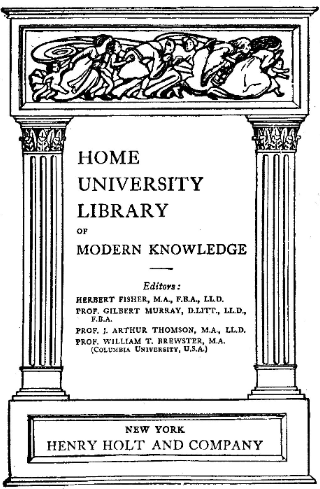 Edition used as base for this ebook: London: Williams & Norgate; New York: Henry Holt; Toronto: Wm. Briggs; India: R. & T. Washbourne [undated, but before 1920; possibly the first edition] [Home University Library of Modern Knowledge]