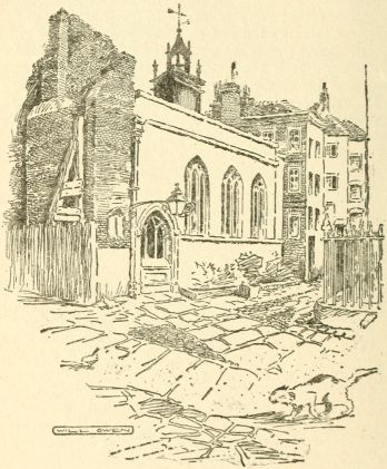 If there is little to remind us of the Roman occupation there is nothing at all to perpetuate the Saxon period. Saxon London was destroyed by the Great Fire of 1135 more effectually than a later London was destroyed by the fire of 1666, when, as the schoolboy stated, the city was purified by the burning of 89 churches. The principal market and trading centre of the city was Chepe—now Cheapside—and the names of the narrow streets branching off that busy highway indicate the trades that were carried on there. We still have our Bread Street, Milk Street, Fish Street and other sustaining byways.