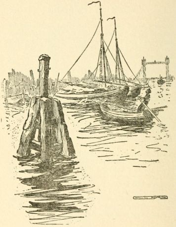 A sluggish river meandering through marshes to the sea, a cluster of huts and a primitive fort by Walbrook—such was old London Town when the Romans first appeared. The name is probably derived from the Celtic "Llyn," a pool (that portion of the river below London Bridge is still known as "The Pool"), and "din" or "dun," a hill or fort.